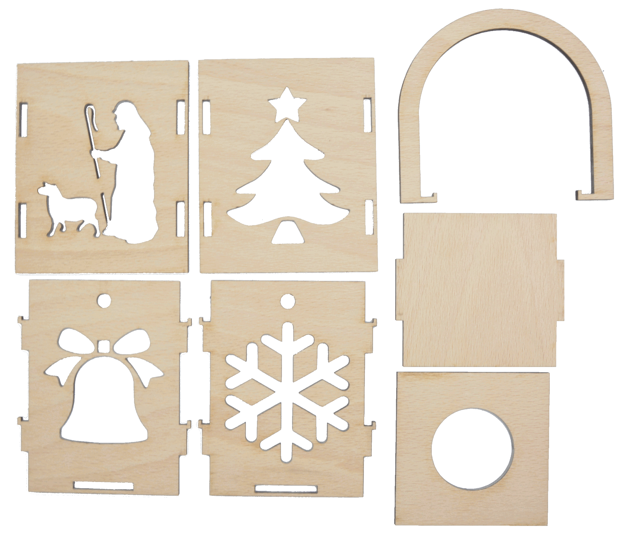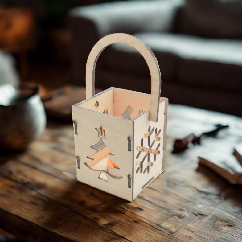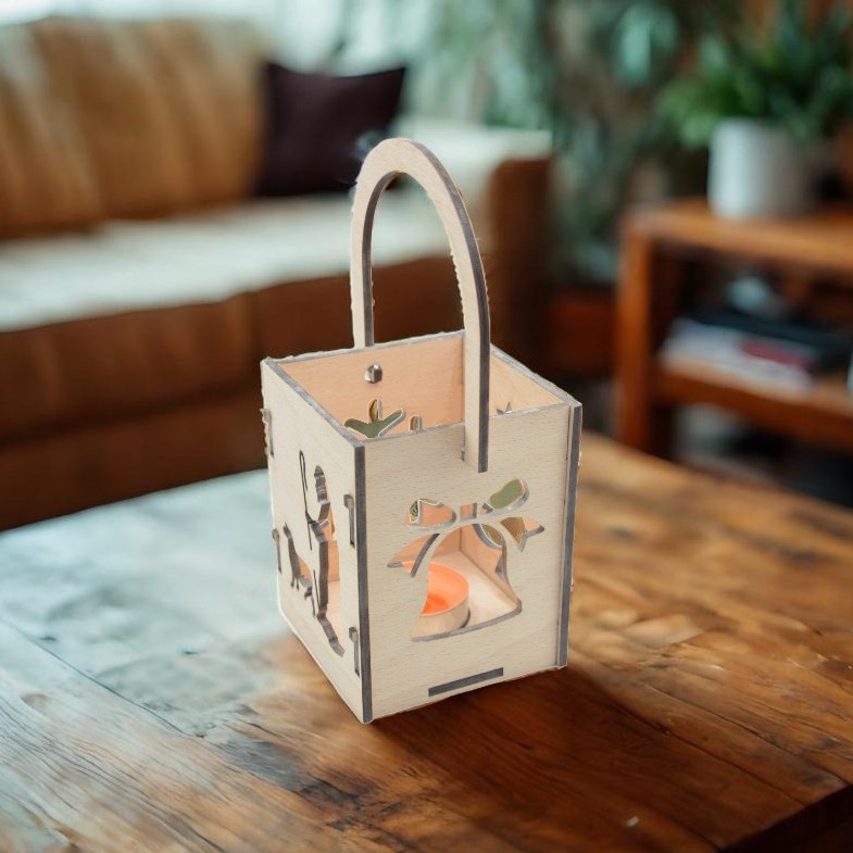 Dřevěná lampa na čajovou svíci - skládačka - motiv vánoční symboly