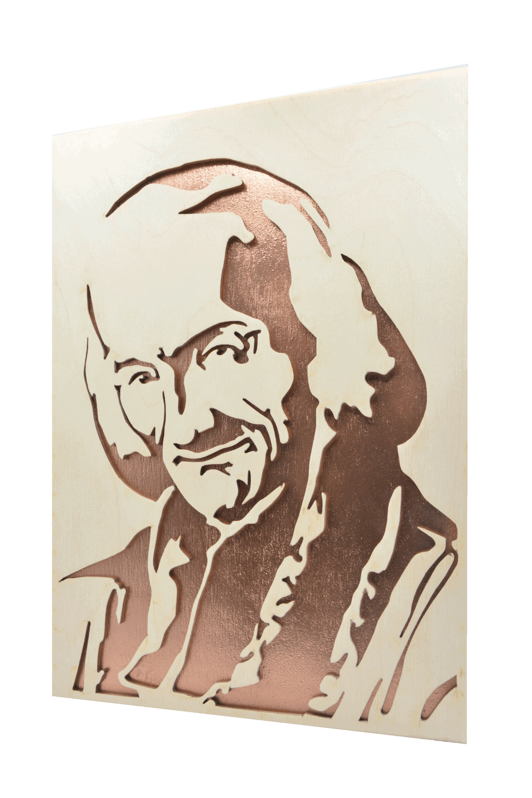 Každý detail je precizně vytvořen technikou vrstvené březové překližky, která dává obrazu hloubku a eleganci. Díky několika barevným variantám si můžete zvolit tu, která nejlépe doplní váš interiér – od klasické černé po měděný odstín.